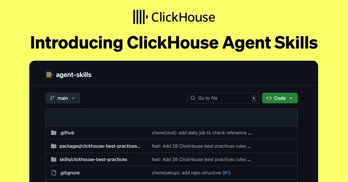 We’re releasing ClickHouse Agent Skills: a set of open-source, packaged skills encoded with ClickHouse best practices learned by our engineers and community.
